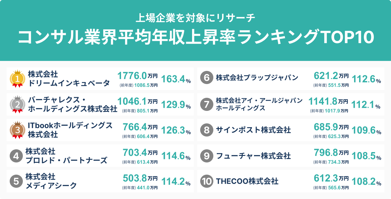 コンサルティング業界平均年収上昇率ランキングTOP10について