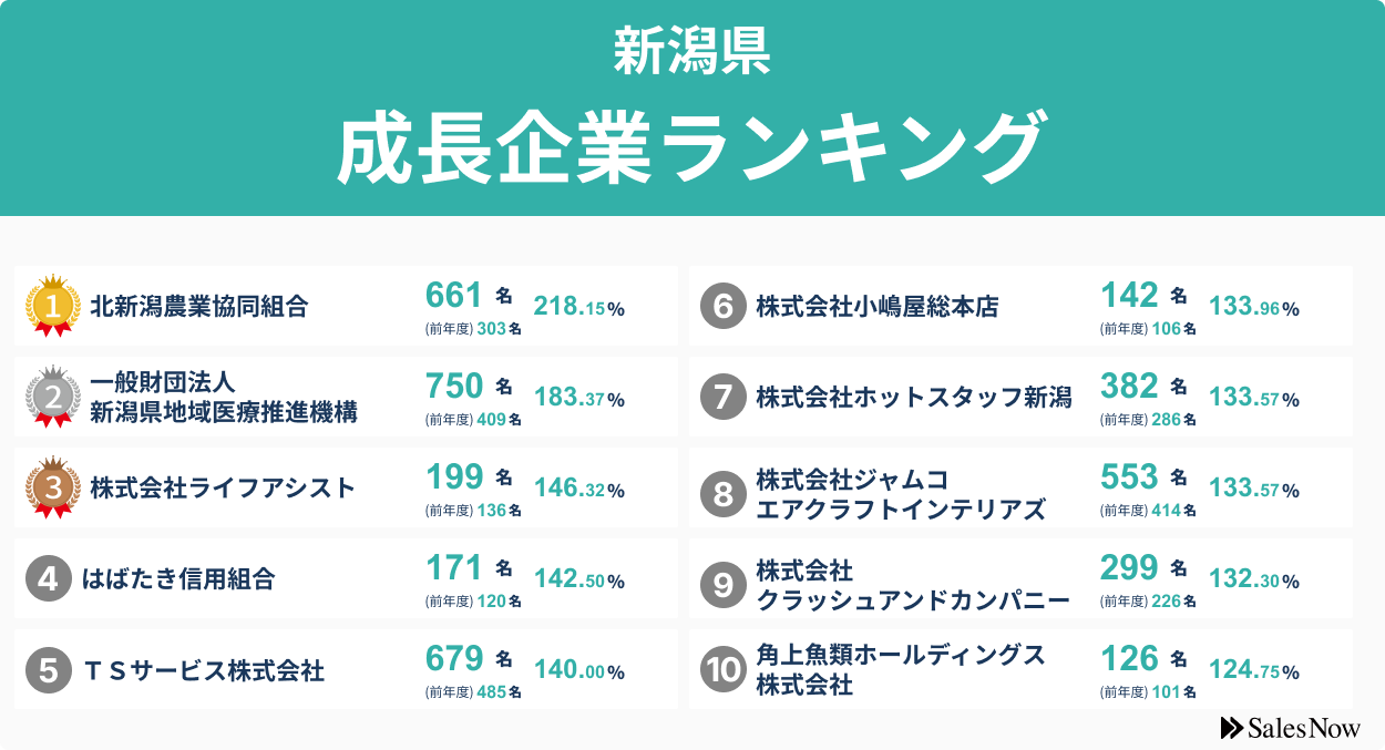 【新潟県】成長企業ランキングTOP50! /SalesNow DBレポート